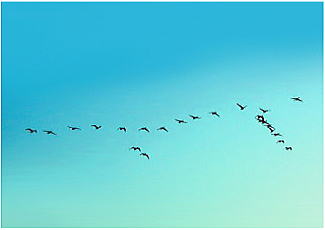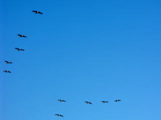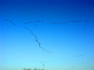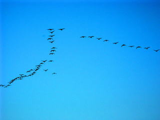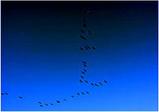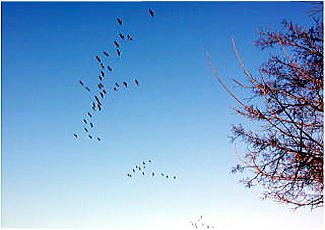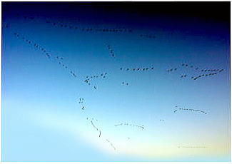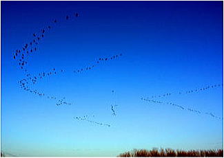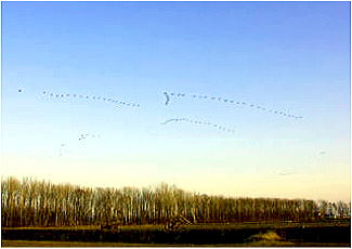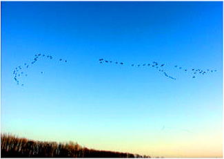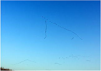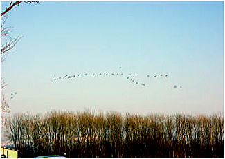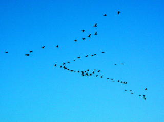 来ました、来ました!右からも左からも、到底素人には数える事は出来ません。それにしても初めて見た鳥の編隊!