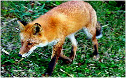 人なれした北キツネ!観光客から饅頭や鳥のから揚げをもらってウロウロ丸々太っていた!逃げないよ。