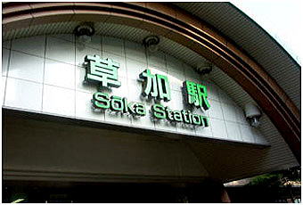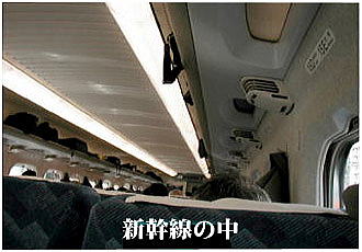 車内は旅客機並に豪華? 丸いビルと思ったら右は半分だけ。 駅前には大きい看板が