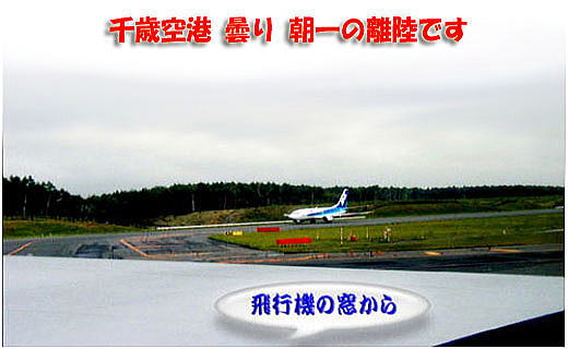 新千歳空港に車を置いて朝一番の飛行機に乗る。 雲の上は朝日が出て綺麗な青空です。