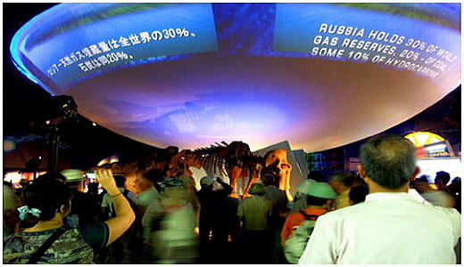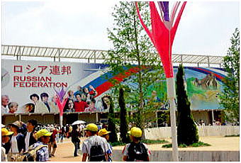 ロシア館で1時間程並び入れた!凄い人数です。全体が骨だけのマンモス象・大きい。