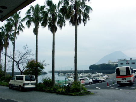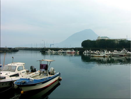大分県、早く起きて別府湾付近にもウロウロ〜♪ 飯前の7時過ぎ、港から由布岳が見えました。