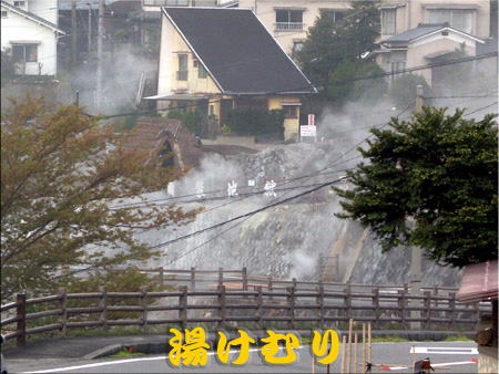 湯の町に湯の華 採集も見学してきました。 周りは湯気の噴き出す所がいっぱいでびっくり。