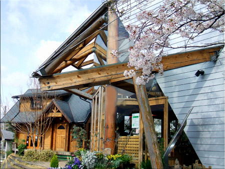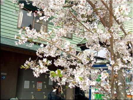 木々の向こうに高級そうな店があるね・・・一見さんお断りだろう?。 角に、ソメイヨシノが、まだ咲いている。