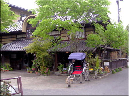 木工店?らしいが閉まっている ! お休みか・・・ 人力車がポツリと一台、乗りますか?いや!歩こう