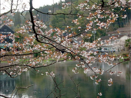 土手には桜が咲き川は綺麗に整備され、京都の様です。 水も澄んでいる、この町は酒屋も多いと聞きました。