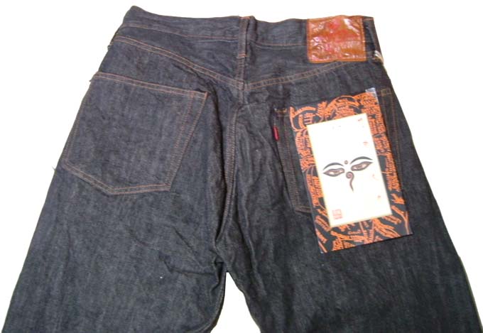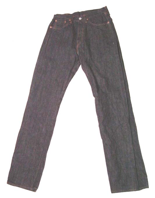 ワンウォッシュタイプ 赤耳ブラックデニム。 チーズ染めしたブラック糸を使い 旧式力織機でテンションを抑えて織り上げたデニム。 表面のザラザラ感とナチュラルなムラ感が特長。 シルエットはやや太いめ。(RRシリーズの中では中ぐらい) ボタンは鉄素材、リベットは銅ムク素材でアースカルチャーオリジナル。(ユニバーサル社別注) ゴーストスキンのレザーパッチ。 レングスは洗い、乾燥条件によって若干の差はありますが34インチ 裾はチェーンステッチ仕上げ。裾上げは代金お支払後にお受けすることができますが、 チェーンステッチ仕上げは別料金とします。普通のミシンの直線縫いシングルステッチ仕上げは無料。 ご注文の際にご用命ください。