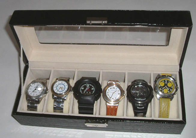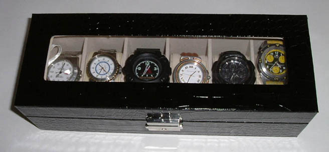 クロコ型押しで、カラーは黒、高級感が漂い、 ケースの蓋は、中が見えるようになっています。