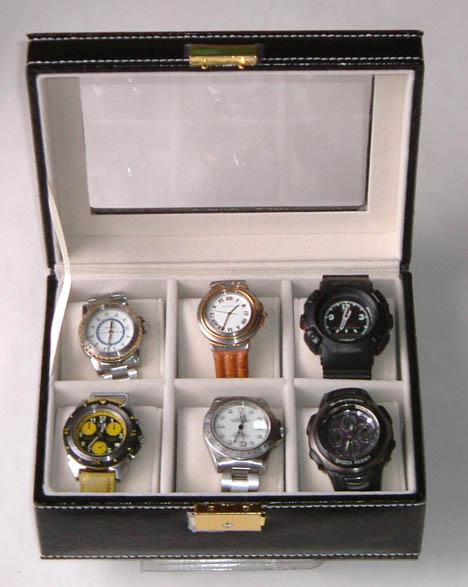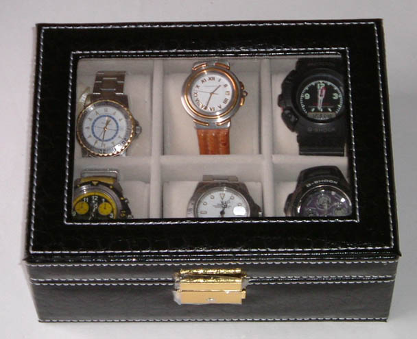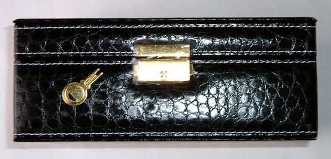 クロコ型押しで、カラーは黒、高級感が漂い、 ケースの蓋は、中が見えるようになっています。