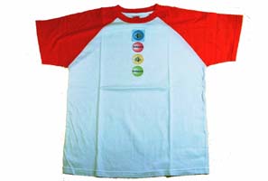 人気のビニールパッチシリーズ 魚の1つにビニールが貼り付けてあり とてもキュート! 色はらぐらん袖で袖の色がオレンジ・紺・赤・青(身頃は全て白) サイズは大人用フリーサイズです。 ご希望の色をご指定下さい。