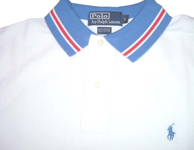 | 商品名 | POLO RALPH LAUREN ポロシャツ 白(襟ブルー赤白) |