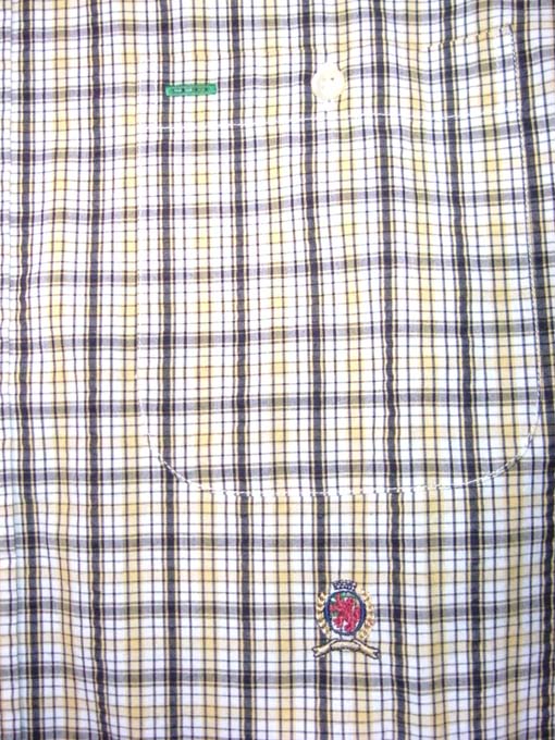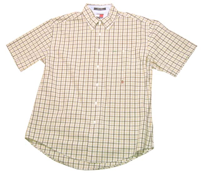 TOMMY HILFIGER 半袖チェックシャツ 黄白紺 57